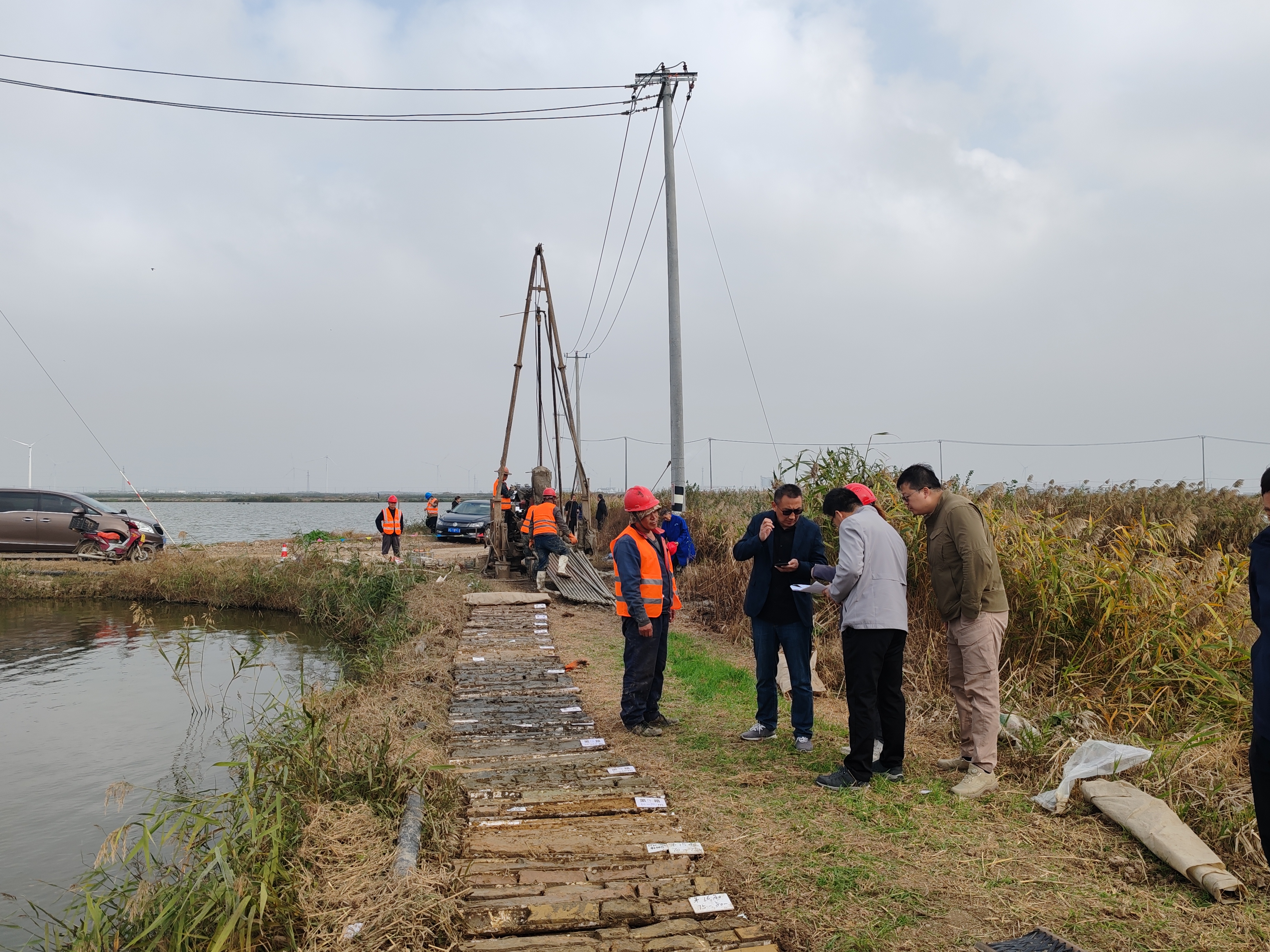 检查组一行现场查看了钻机钻孔、岩土取样、现场编录、波速测试工作情况,听取了施工负责人对现场开展的钻探取样和波速测试等情况汇报,问询并检查了现场安全施工相关措施和装备,对现场施工情况进行详细检查记录。检查组向施工人员宣传了安评工作相关规章制度,并要求继续严格按照规范做好后续现场工作。