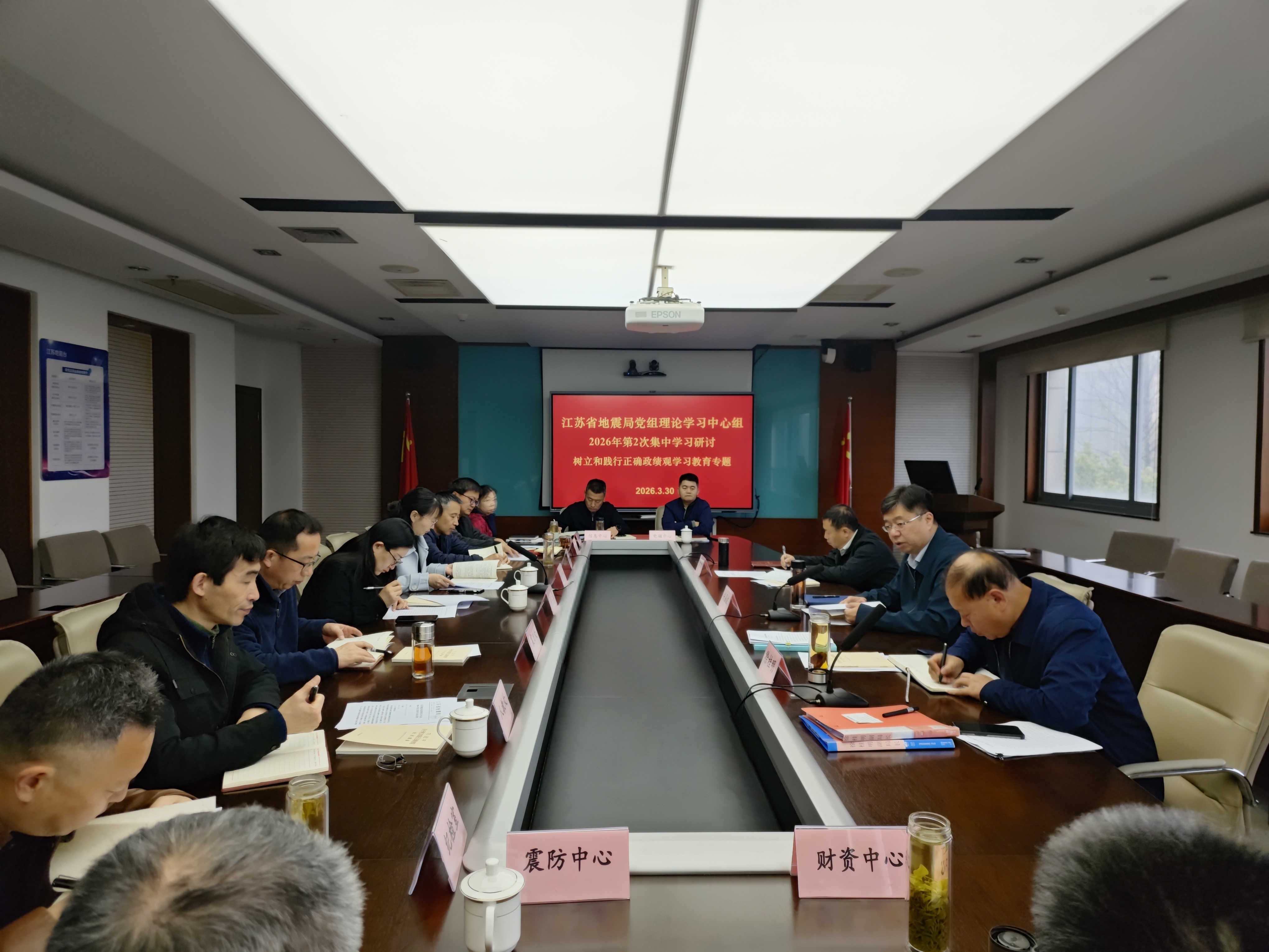 3月30日,江苏省地震局党组理论学习中心组开展树立和践行正确政绩观学习教育专题集体学习。局党组书记、局长关晶波主持会议并作主题发言,局党组成员、副局长徐桂明、徐浩领学《习近平关于树立和践行正确政绩观论述摘编》和《中华人民共和国国民经济和社会发展第十五个五年规划纲要》。本次学习采取集中学习、个人自学和集中交流相结合的方式,徐桂明作专题发言,部分处室主要负责人作交流发言,各青年理论学习小组组长列席会议。